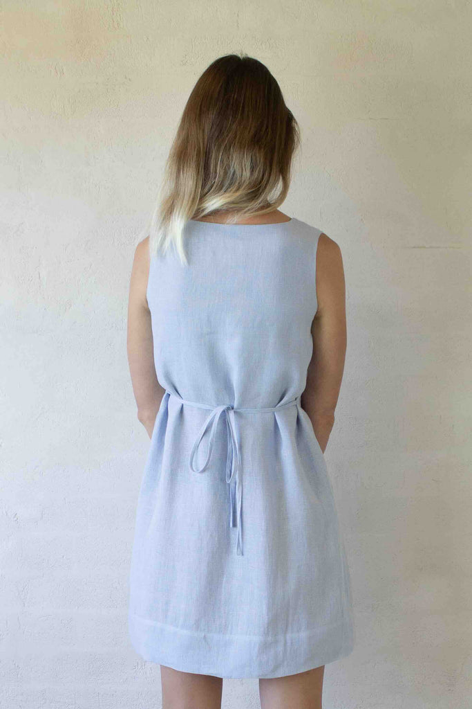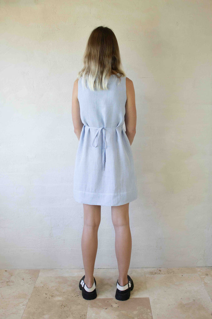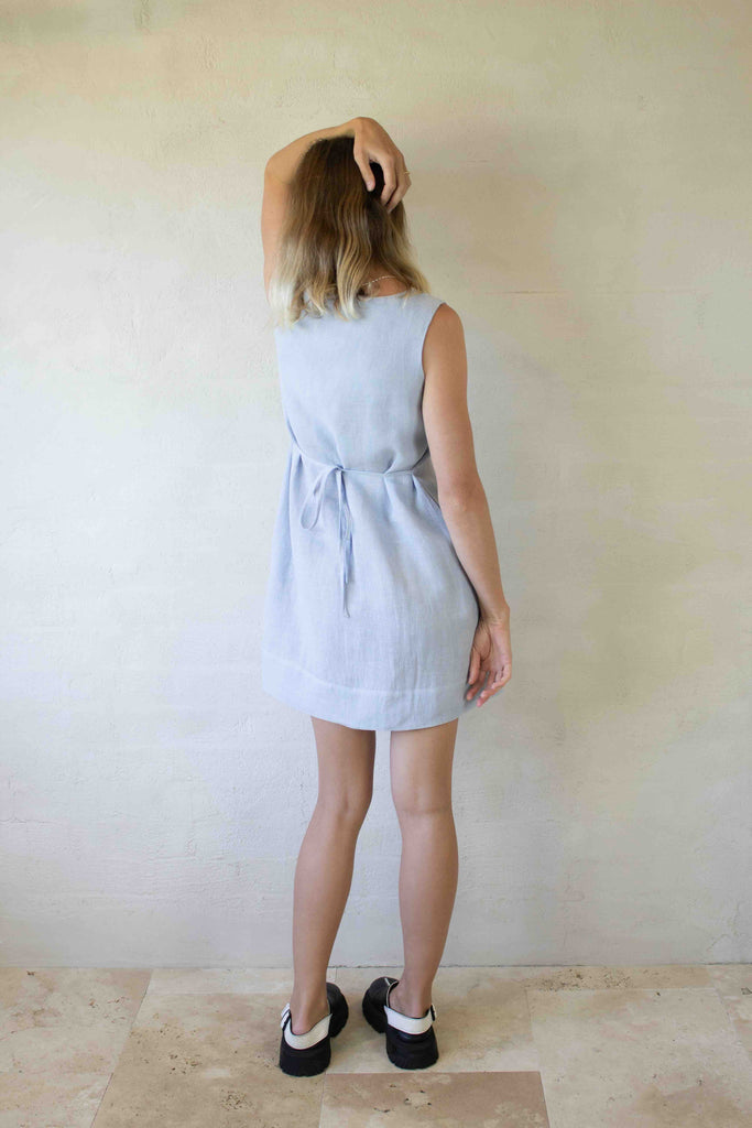 Poppy Dress - Linen Mini Dress in Pale Blue